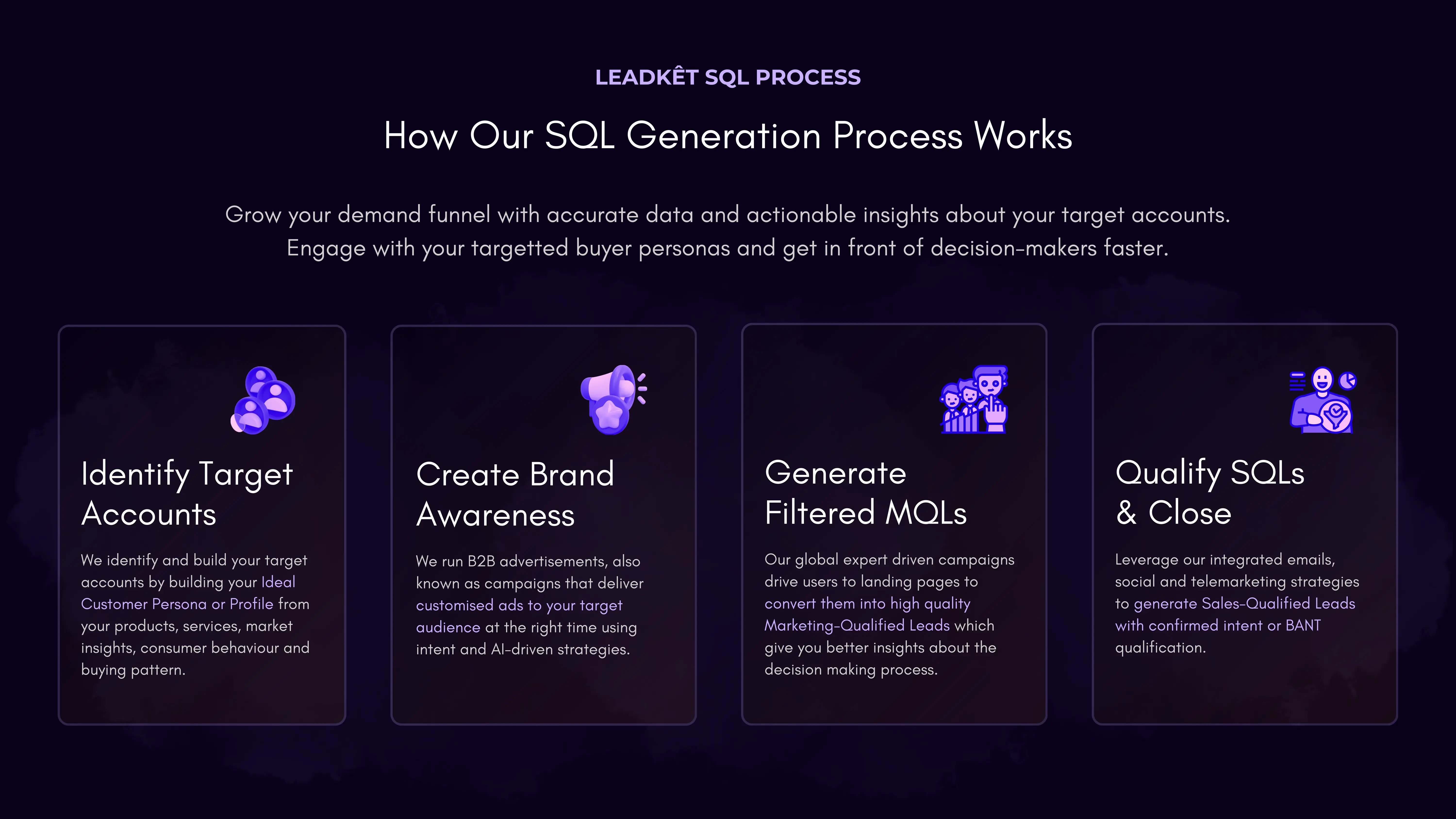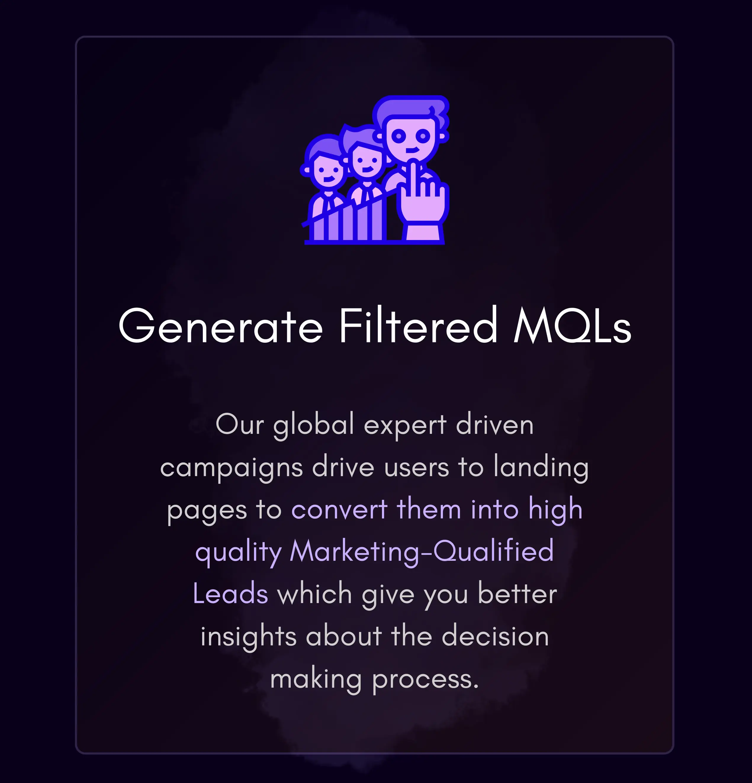 We identify & verify a lead‘s interest in your product after taking them through a funnel. So you get SQLs that take lesser nurturing to convert.